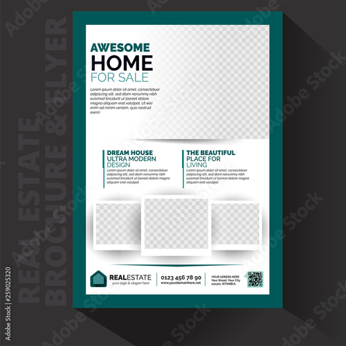 Fototapeta premium Real Estate Turquoise brochure flyer design. Leaflet cover presentation....