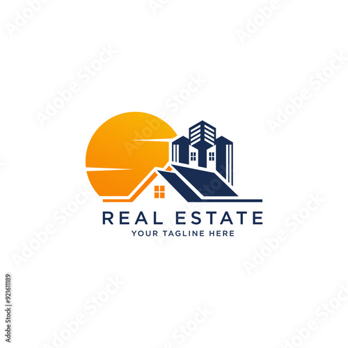 © tomz, Fototapeta premium real estate vector logo design with home and sun shape