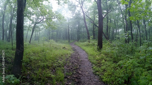 Obraz premium 23. Real forest trail during foggy morning hike