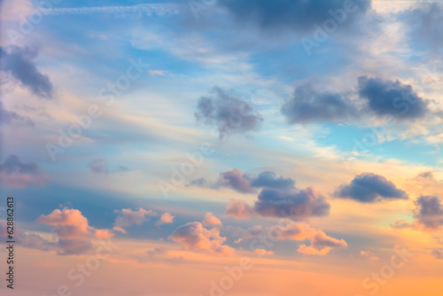 Obraz premium Real gentle sunrise against the sky with pastel colorful clouds. Without any birds.