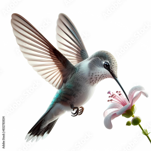 © XIAOBING, Obraz premium real life like natural hummingbird hovering over the flower