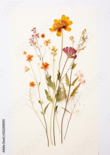 © Rawpixel.com, Naklejka premium Real Pressed a single minimal colorful wildflowers painting plant herb.
