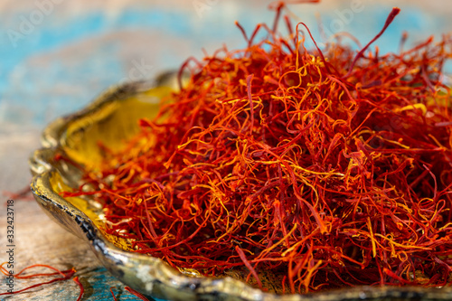 © barmalini, Naklejka premium Real red dried shaffron spice close up