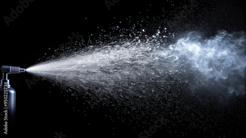 Fototapeta premium Realistic aerosol sprayer jet creating splash of water particles on black background , spray mist, atomizer, water droplets, mist