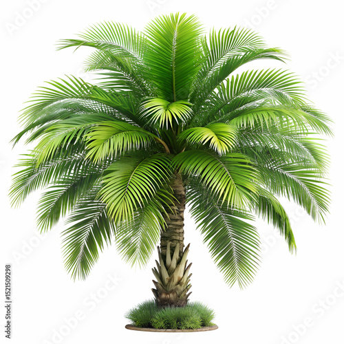 Fototapeta premium Realistic and detailed rendering of a vibrant green palm tree isolated on a...
