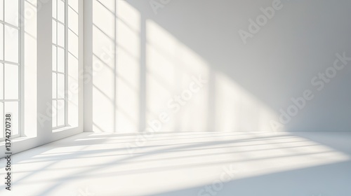 Fototapeta premium realistic and minimalist blurred natural light windows shadow overlay on wall paper texture abstract background minimal abstract light white background for product presentation