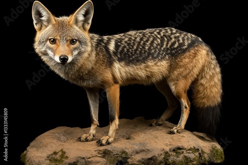 © AHNH3, Fototapeta premium Realistic animal model of a fox on a natural rock base display