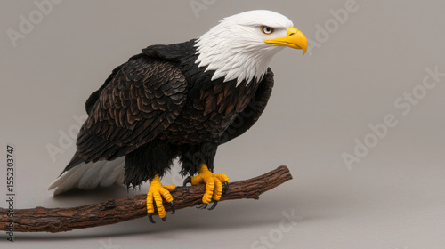 Fototapeta premium Realistic Bald Eagle Figure Perched on a Branch with Detailed Features