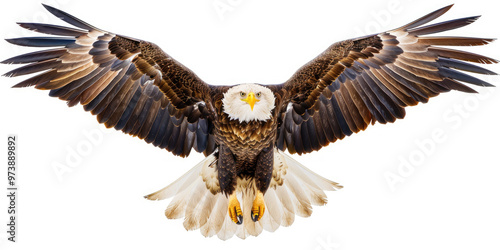 Fototapeta premium Realistic Bald Eagle in Mid-Air with Full Wingspan Isolated On Transparency...
