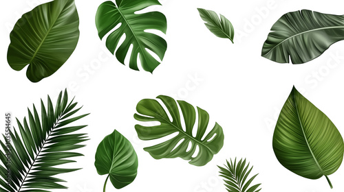 © Kyuubisa, Fototapeta premium Realistic big green tropical leaves on a transparent background