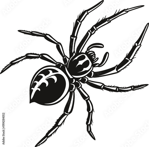 © Muktadir Billa, Obraz premium Realistic Black and White Garden Spider Silhouette with Detailed Markings Vector