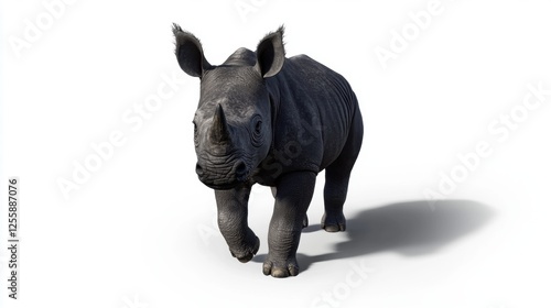 Fototapeta premium Realistic Black Rhinoceros Walking Gracefully Against White Background in...