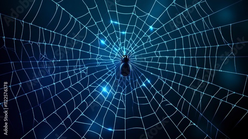 © El Media, Fototapeta premium realistic black spider web background. with beautiful blue light.