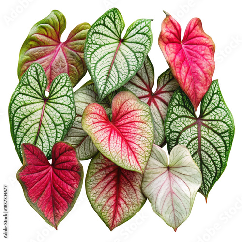 © tarustock, Obraz premium Realistic Caladium Bicolor Leaves Isolated Collection on transparent background