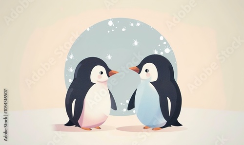 © Puji, Obraz premium Realistic cartoon cute penguin with big eyes and simple modern background ai generated