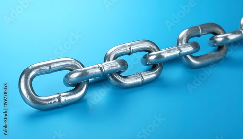 © alex, Obraz premium Realistic Chain Link on Blue Background Unity and Security Symbol