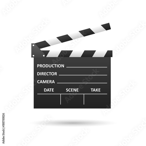 © Artrise Stocker, Fototapeta premium Realistic Cinema clapper, isolated on white. Movie making. Film industry