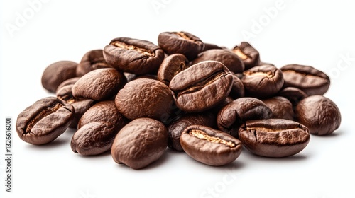 © Pickoloh, Fototapeta premium Realistic close up of roasted Toasted Coffee beans isolated on white background
