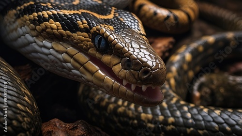 © Prashant, Fototapeta premium Realistic close up shot of deadly snakes ,poisonous snake ,viper snake ,cobra ,black mamba ,Ai gen