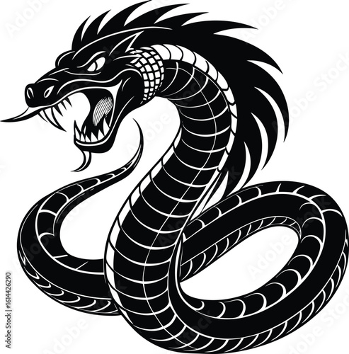 © AR Vectoria, Fototapeta premium Realistic coiled snake transparent vector for tattoo art