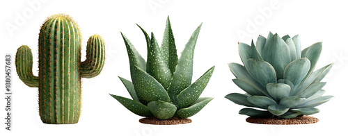 © Putra, Fototapeta premium Realistic Collection of Desert Plants with Cactus and Succulent Arrangement