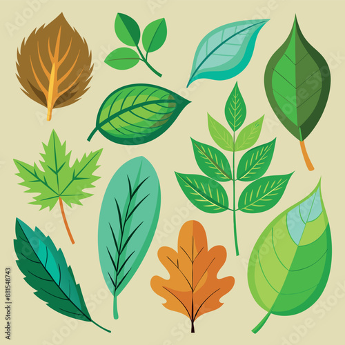 © Mehedi, Fototapeta premium realistic collection of leaves icons