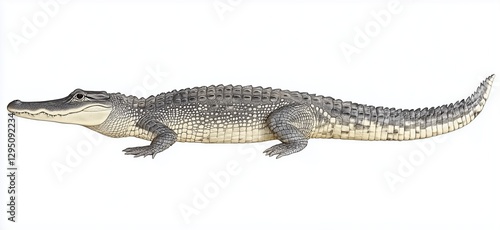 Fototapeta premium Realistic Crocodile Lying on White Background Showcasing Detailed Textures...