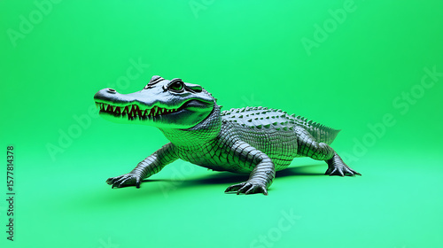 Obraz premium Realistic crocodile model on a vibrant green background, showcasing detailed...