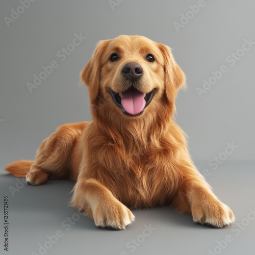 © Going Place, Fototapeta premium Realistic 3D Depiction of Golden Retriever Lying Down Smiling Calmly