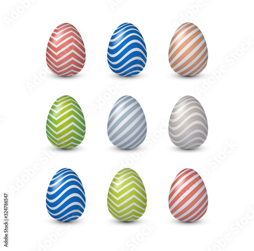 © omoreau, Fototapeta premium Realistic 3d easter eggs set in modern snorkel palette, classic blue, vector illustration