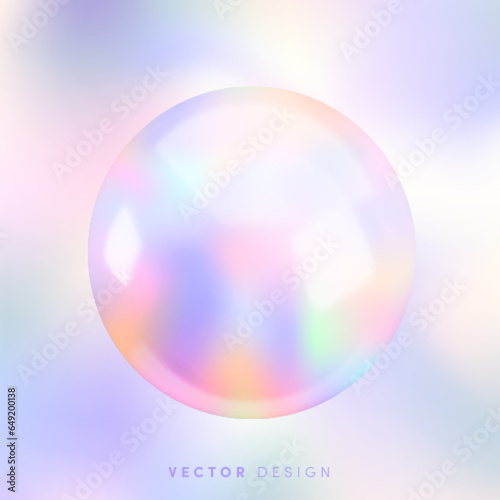 © Ketmut, Fototapeta premium Realistic 3d holographic sphere. Vector glossy gradient ball, Iridescent round shape render on vibrant colorful background. Abstract element trendy neon design