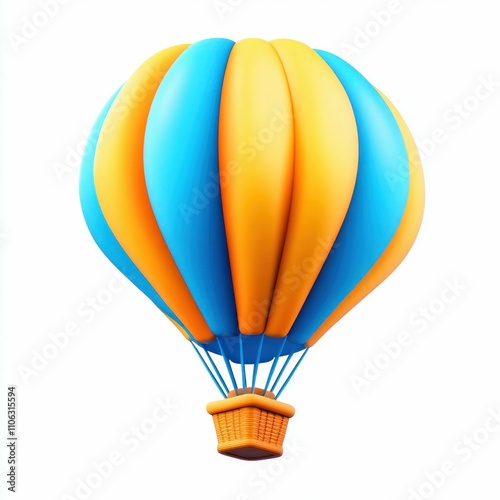 © NovaVision, Naklejka premium Realistic 3D Hot Air Balloon in Blue, Orange, and Yellow on White Background