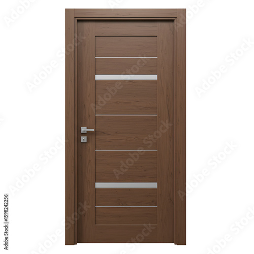 © ThomasR, Fototapeta premium Realistic 3D Illustration of Modern Wooden Door With Silver Accents and Transparent PNG