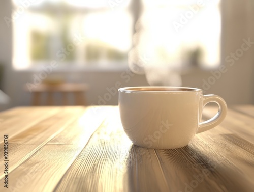 © Majella, Fototapeta premium Realistic 3D Illustration ofCoffee Cup onRustic Wooden Table