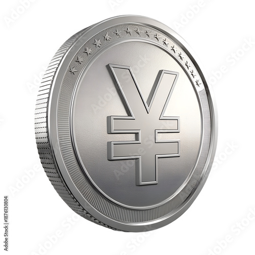 © Jira, Obraz premium Realistic 3D Japanese Yen Silver Coin Isolated on a Neutral Background