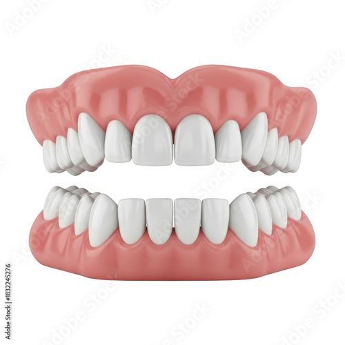 Fototapeta premium Realistic 3d render of a full set of upper and lower dentures with white...