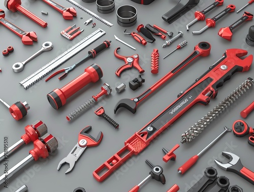 © Moviebirth, Fototapeta premium Realistic 3D render of light industrial tools, detailed