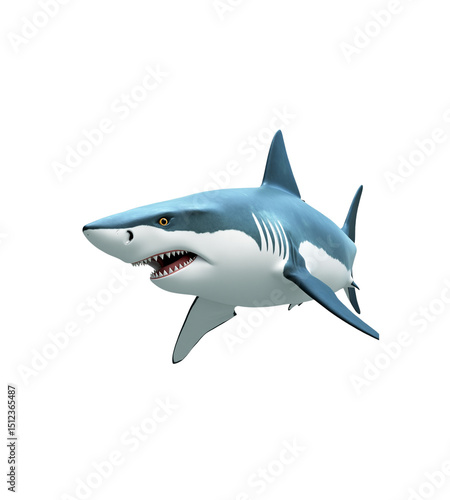 Fototapeta premium Realistic 3d rendered illustration of a great white shark isolated against a...