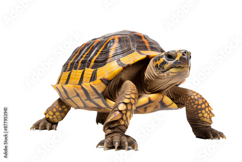 © Ameer, Obraz premium Realistic 3d rendered turtle isolated on transparent background, PNG style illustration of a sea turtle with detailed texture and natural coloring, ideal for marine life and ocean-themed design projec