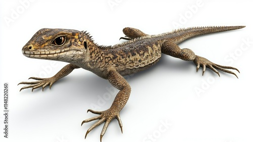 Fototapeta premium Realistic 3D Rendering of a Detailed Lizard on a White Background, Capturing Unique Skin Texture and Intricate Features, Ideal for Educational and Creative Use