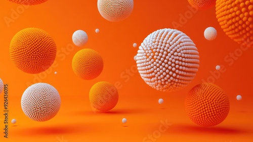 Fototapeta premium Realistic 3D spheres with intricate dot or letter textures against an orange...