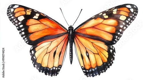 © Kopgz-41, Fototapeta premium Realistic 3D Watercolor Monarch Butterfly in Orange and Black - Download