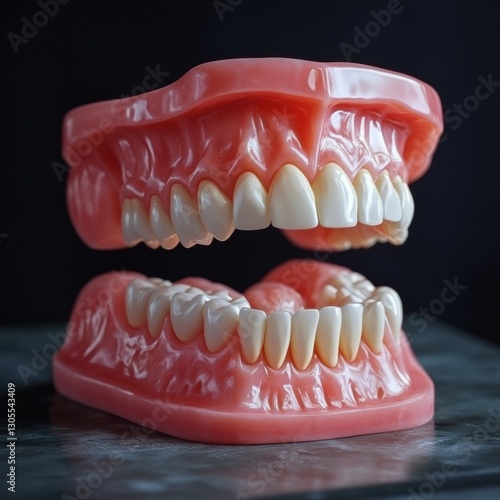 Obraz premium Realistic dental model demonstrating human teeth structure on a dark surface...
