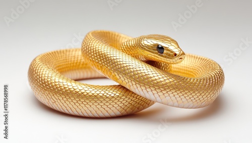 Fototapeta premium Realistic Depiction of a Glossy Golden Snake Coiling Elegantly on a Light...