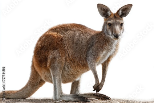© Iftikhar alam, Fototapeta premium Realistic depiction of a kangaroo standing on a flat surface with a transparent background showcasing its detailed features and posture