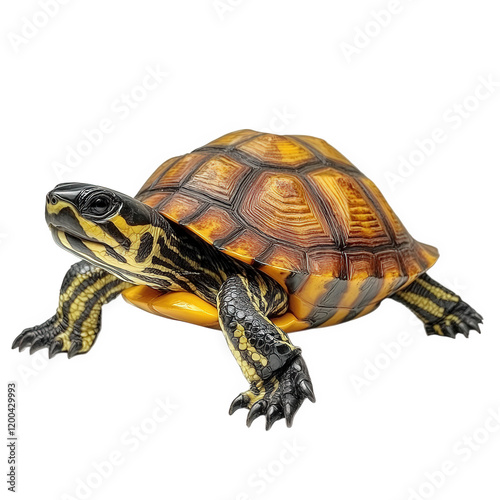 Fototapeta premium realistic depiction of a turtle with a beautifully patterned shell. showcasing vibrant colors and intricate details the turtle is posed in a dynamic manner against a clean. white background. highlight