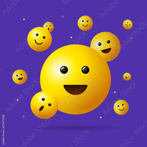 © mouse_md, Fototapeta premium Realistic Detailed 3d Falling Emoji Sign Background Banner Card. Vector