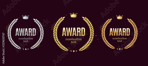 © mouse_md, Obraz premium Realistic Detailed 3d Laurel Wreath Award Emblems Set. Vector
