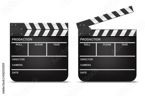 Fototapeta premium Realistic Detailed 3d Movie Clapperboards Set. Vector