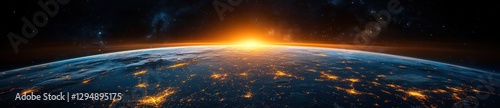 © sunny, Fototapeta premium Realistic Digital Earth Globe Rendering with City Lights and Dark Blue Color Scheme
